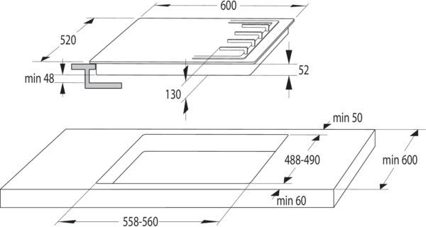 | Розміри для вбудовування (ШхГ), мм | 558-560х488-490 |