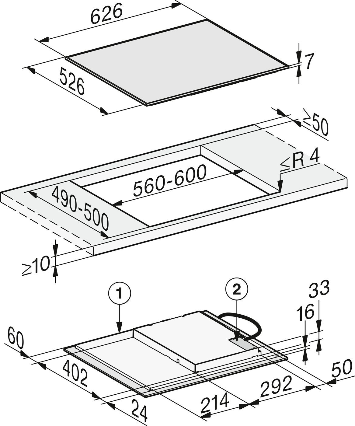 | Розміри для вбудовування (ШхГ), мм | 560-600х490-500 |