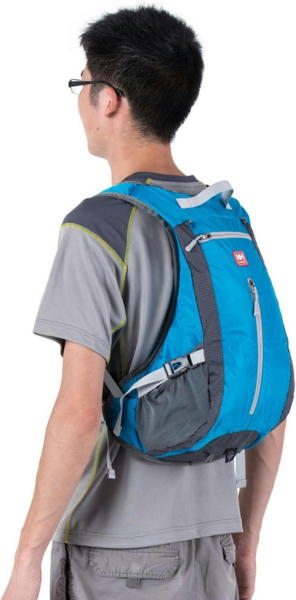 Велосипедний рюкзак надлегкий, об'ємом 15 літрів. Зручний має універсальний чохол для шолома. Є вбудована сітчаста подушка, яка легко пропускає повітря і не створює дискомфорту. Нейлонова тканина, захищена від вологи, перешкоджає намоканню виробу всередині. Спереду є невелика кишенька, куди можна помістити різні речі на кшталт мобільного телефону або карток. Конструкція рюкзака: 3 відділення на блискавці, 2 бічні сітчасті кишені, нижнє відділення сітки для шолома. В основі виробу - водостійкий нейлон 420D із поліуретановим покриттям.