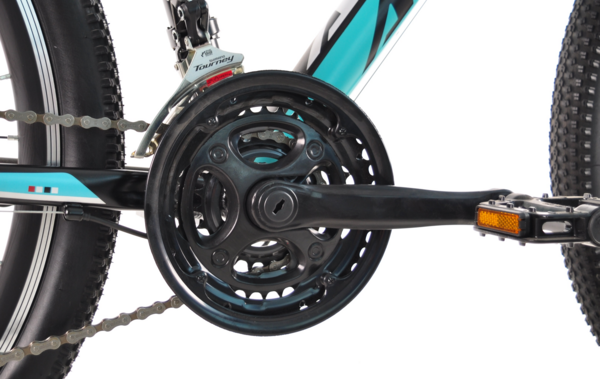 Вилка з амортизацією допомагає згладити нерівності шляху, роблячи кожну поїздку максимально комфортною. 21 швидкість, представлених системою перемикачів Shimano, дає змогу легко справлятися з підйомами, спусками та змінами рельєфу. Надійні дискові гальма гарантують безпечне гальмування за будь-яких умов.