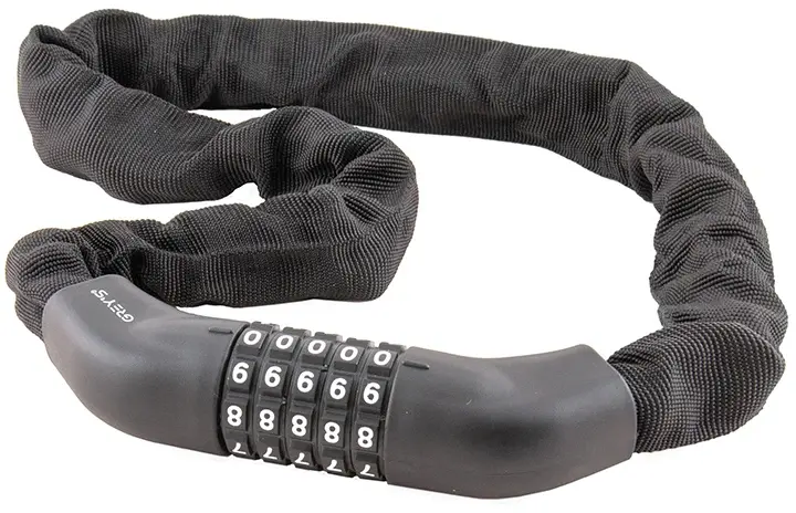 Замок Grey's ланцюговий з колодкою 6 х 1000 мм. Сталевий ланцюг із колодкою, покритий нейлоновою тканиною, захистить велосипед від косметичних пошкоджень.