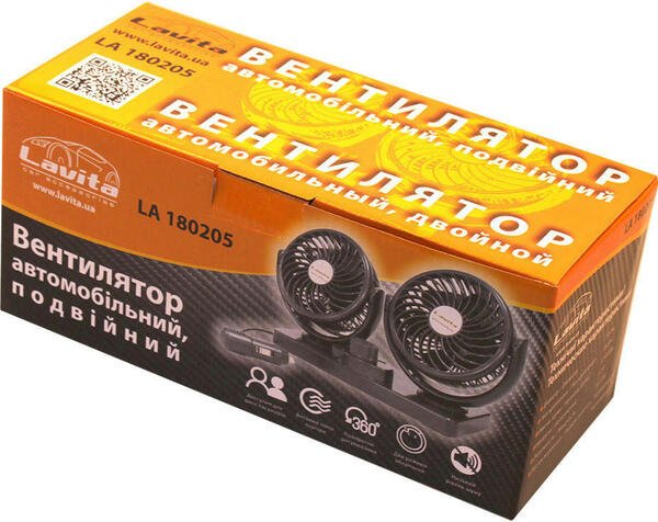 - Автомобільний вентилятор Lavita подвійний 4", 12В (LA_180205)