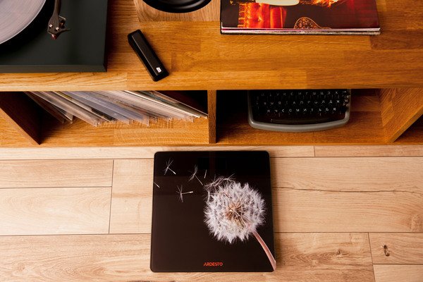 Підлогові ваги з дизайнерським малюнком. Призначені для вимірювання маси тіла й оснащені вбудованим термометром, а також функцією порівняння попередніх результатів. Модель SCB-965BL виконана в ексклюзивному дизайні. Малюнок з кульбабою робить ваги модним аксесуаром для прикраси будь-яких приміщень.