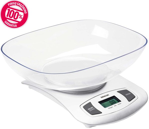 Ваги кухонні Sencor SKS4001WH - це зручні кухонні ваги, які здатні вимірювати вагу з точністю до 1 грама. Призначені для побутового використання. Оснащені практичною знімною пластиковою чашею об'ємом 200 мл. Крім стандартного зважування, на цих вагах можна автоматично відображати на дисплеї об'єм молока або води.
