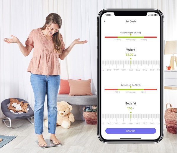 Відстежуйте не тільки вагу, а цілих 10 параметрів вашого тіла: вагу, ІМТ, жирові відкладення, м'язову масу, масу кісток, рівень води в організмі, вісцеральний жир, підшкірний жир, рівень базального метаболізму і метаболічний вік.