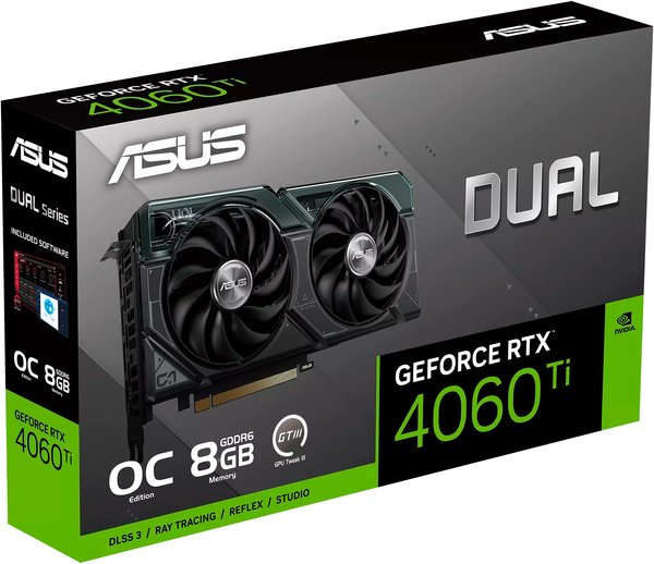 ASUS Dual GeForce RTX 4060 Ti поєднує в собі динамічну теплову продуктивність і широку сумісність. У 2,5-слотову карту завдовжки 22,7 см поміщено передові рішення для охолодження флагманських відеокарт, включно з двома вентиляторами Axial-tech для максимального збільшення повітряного потоку до радіатора, що забезпечує більшу потужність за меншої площі. Усе це робить ASUS Dual ідеальним вибором для геймерів, яким потрібна потужна графічна продуктивність у компактному корпусі.