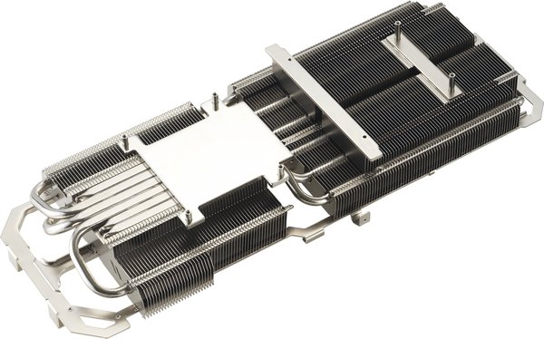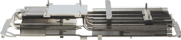 Більша її частина покрита захисною металевою пластиною з широким вхідним отвором. Через цей отвір гаряче повітря від відеокарти відводиться до витяжних корпусних вентиляторів.