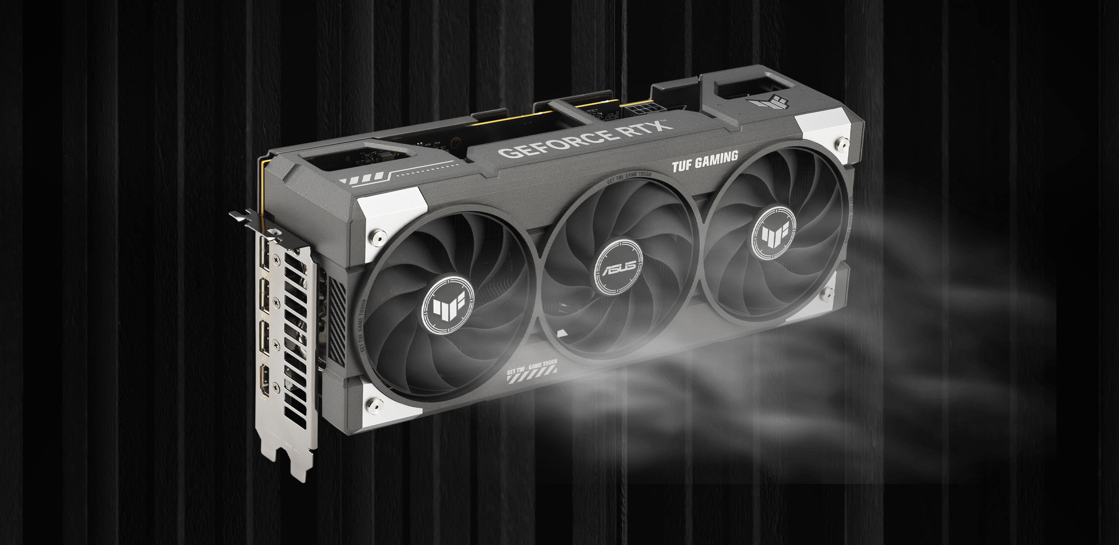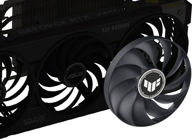 Два зовнішні вентилятори обертаються проти годинникової стрілки, щоб зменшити турбулентність і поліпшити розподіл повітря. Всі три вентилятори зупиняються, коли температура графічного процесора опускається нижче 50°C, забезпечуючи тихішу роботу під час виконання легких завдань. Вони знову запускаються при температурі вище 55°C, дотримуючись кривої швидкості, яка забезпечує баланс між продуктивністю та шумом.