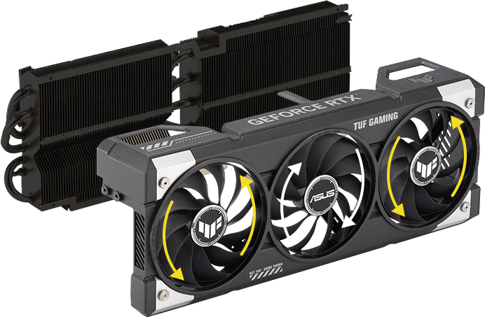 Ця вдосконалена система охолодження використовує ексклюзивну технологію ASUS MaxContact та ефективні вентилятори Axial-tech, що забезпечує високу ефективність охолодження, оптимізований потік повітря та тиху роботу, і все це в міцному металевому корпусі з вентиляційними отворами.