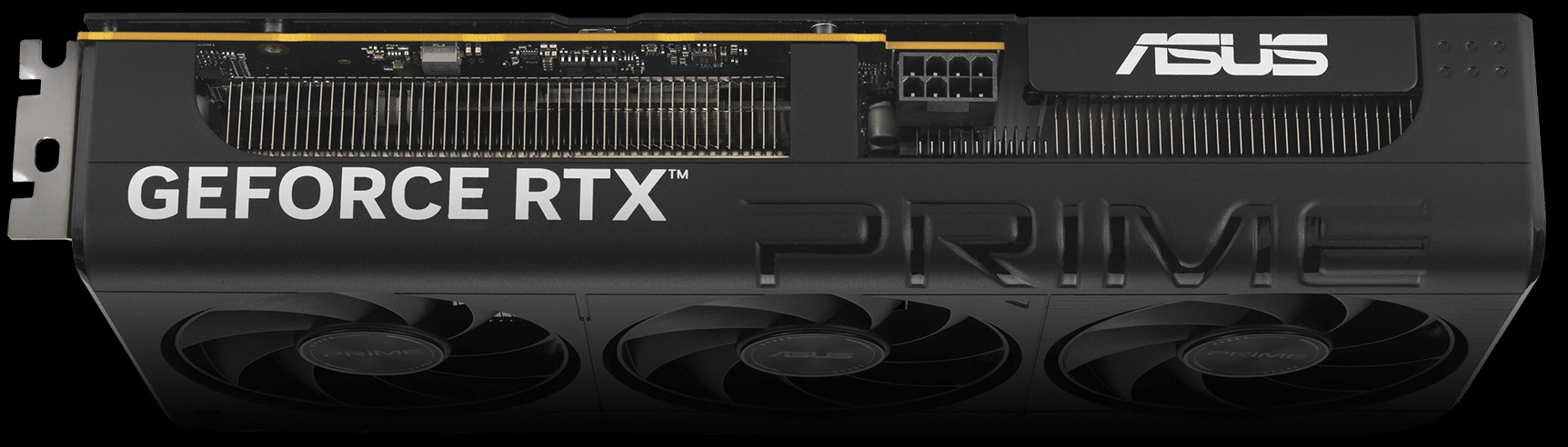 Prime RTX 5060 має 2,5-слотову конструкцію з ретельно продуманим розташуванням кожуха, радіатора та теплових трубок, що дозволяє трьом вентиляторам Axial-tech використовувати вентиляцію бічної панелі корпусу та забезпечувати оптимальну тепловіддачу.