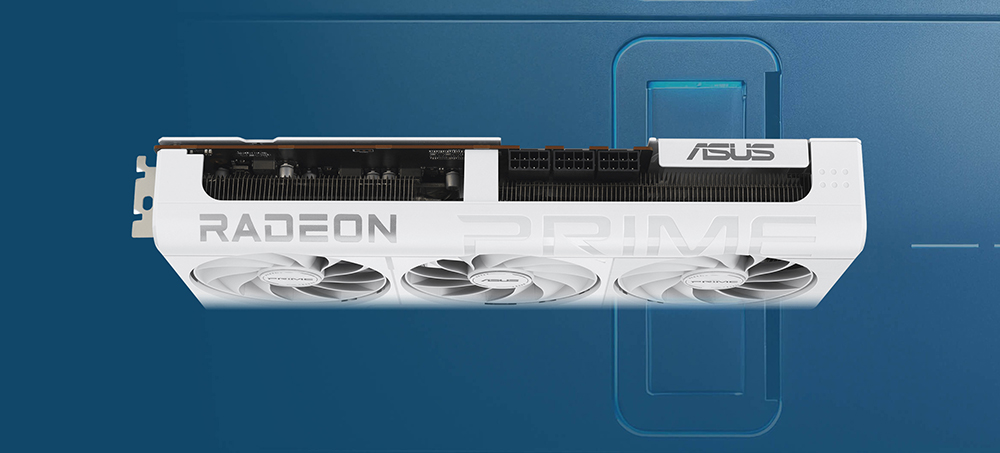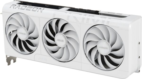 Prime Radeon RX 9070 XT White Edition має 2,5-слотову конструкцію з ретельно продуманим дизайном корпусу, що дозволяє трьом вентиляторам Axial-tech ефективно використовувати бічну вентиляцію та забезпечувати оптимальну теплову продуктивність.