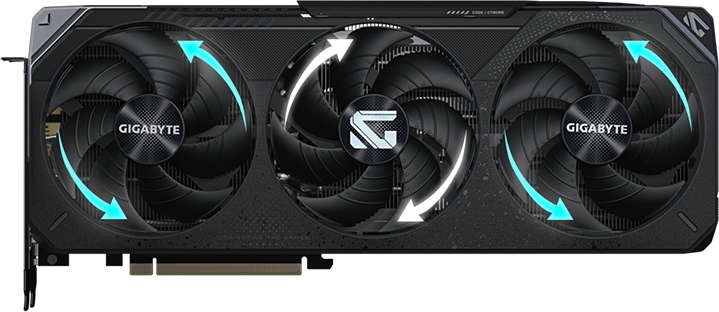 Система охолодження WINDFORCE забезпечує виняткову тепловіддачу завдяки поєднанню передових технологій. Вона оснащена теплопровідним гелем серверного класу, інноваційними вентиляторами Hawk з альтернативним обертанням, композитними мідними тепловими трубками, великою мідною пластиною, 3D-вентиляторами та екранним охолодженням.
