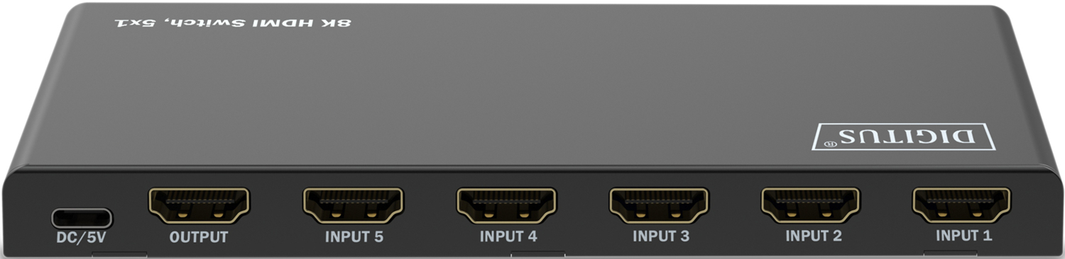 DIGITUS HDMI 5x1 підтримує відео надвисокої чіткості з роздільною здатністю до 8K при 60 Гц із повною передачею кольору 4:4:4. Це гарантує максимальну якість зображення для сучасних телевізорів і моніторів, включно з підтримкою геймінгу, стримінгу та професійного відео.