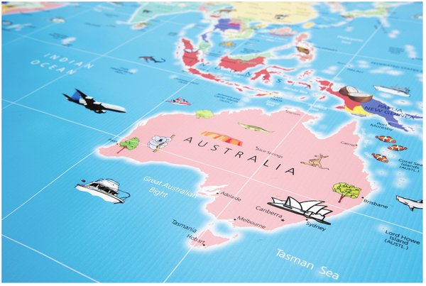 Розширюйте знання дітей про світ, поєднуючи читання карти, проектне навчання, геометрію, координати та багато іншого. Деталі та спеціальне оформлення роблять карту візуально привабливою та захоплюючою для дітей. Карта надрукована на міцному вінілі з люверсами для підвішування.