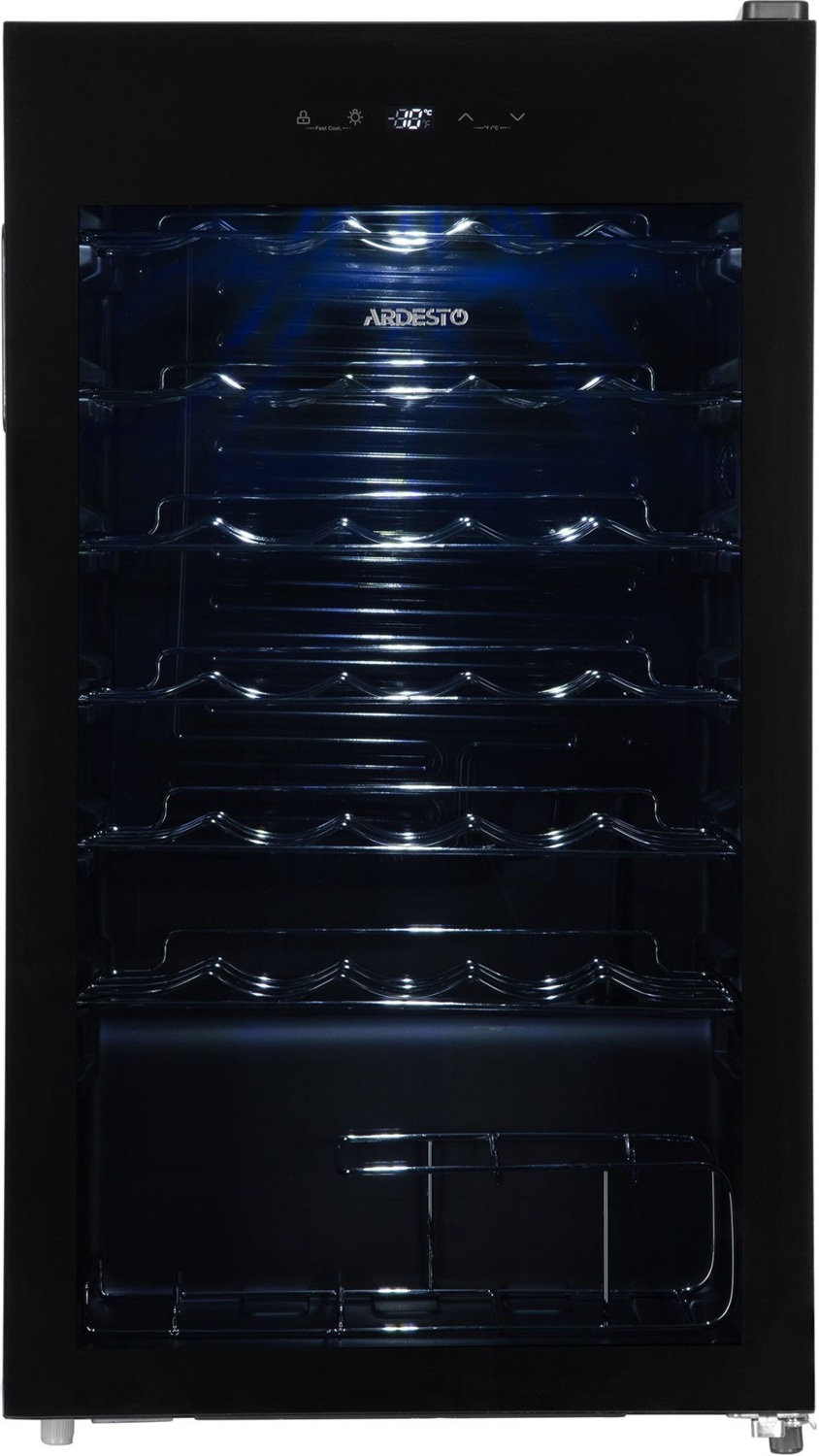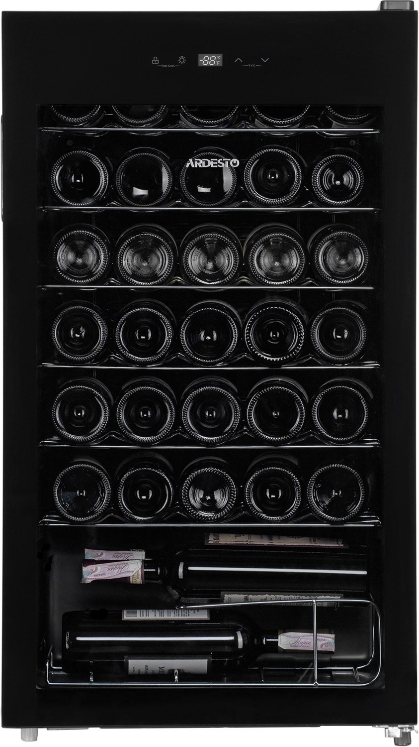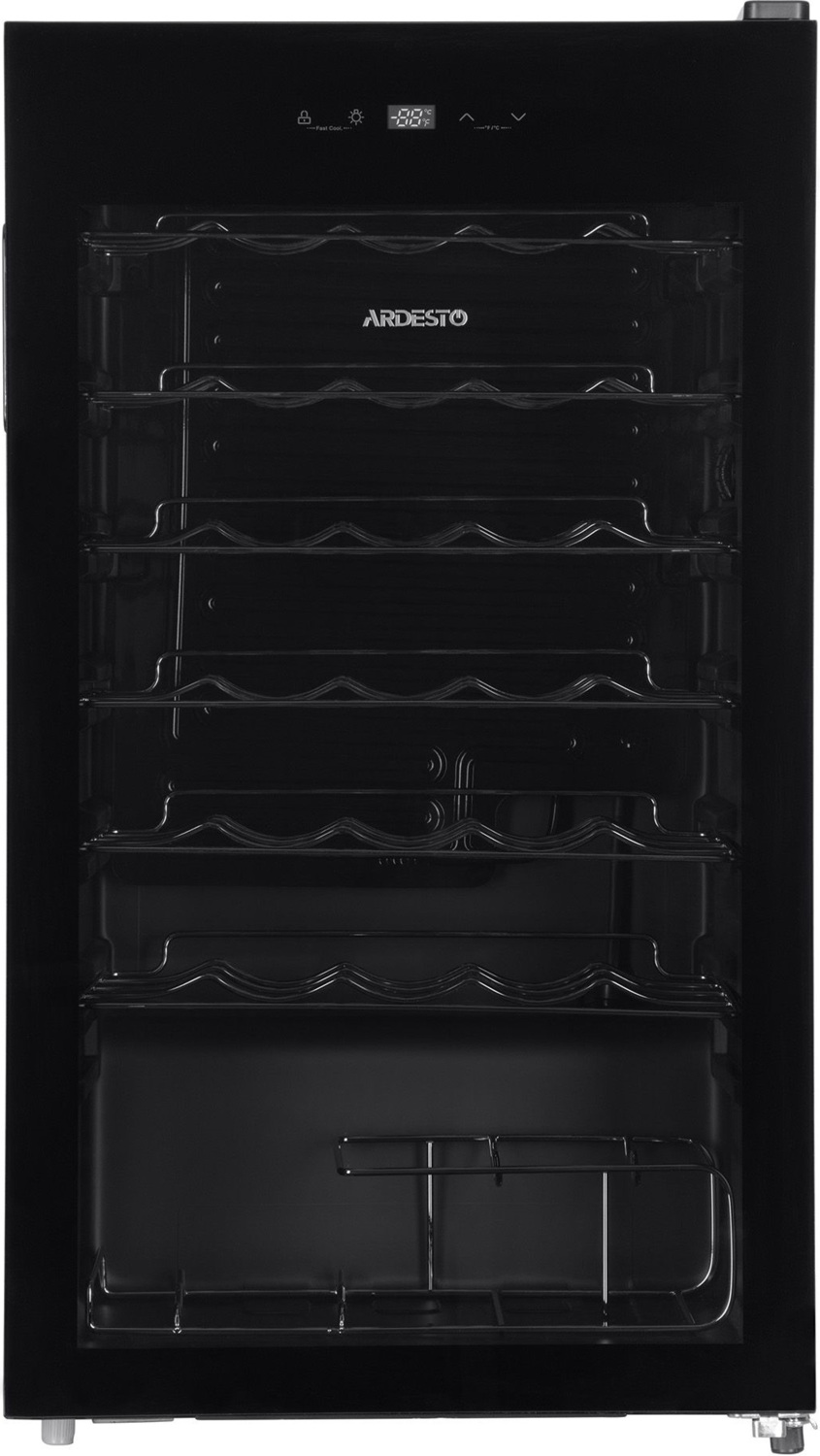 Винна шафа Ardesto WCF-M34 призначена для дбайливого зберігання 34 пляшок вина одночасно. Вона оснащена сенсорною панеллю управління, LED-підсвічуванням, а також системою оповіщення при тривалому відчиненні дверей та відхиленні температури від норми.