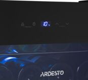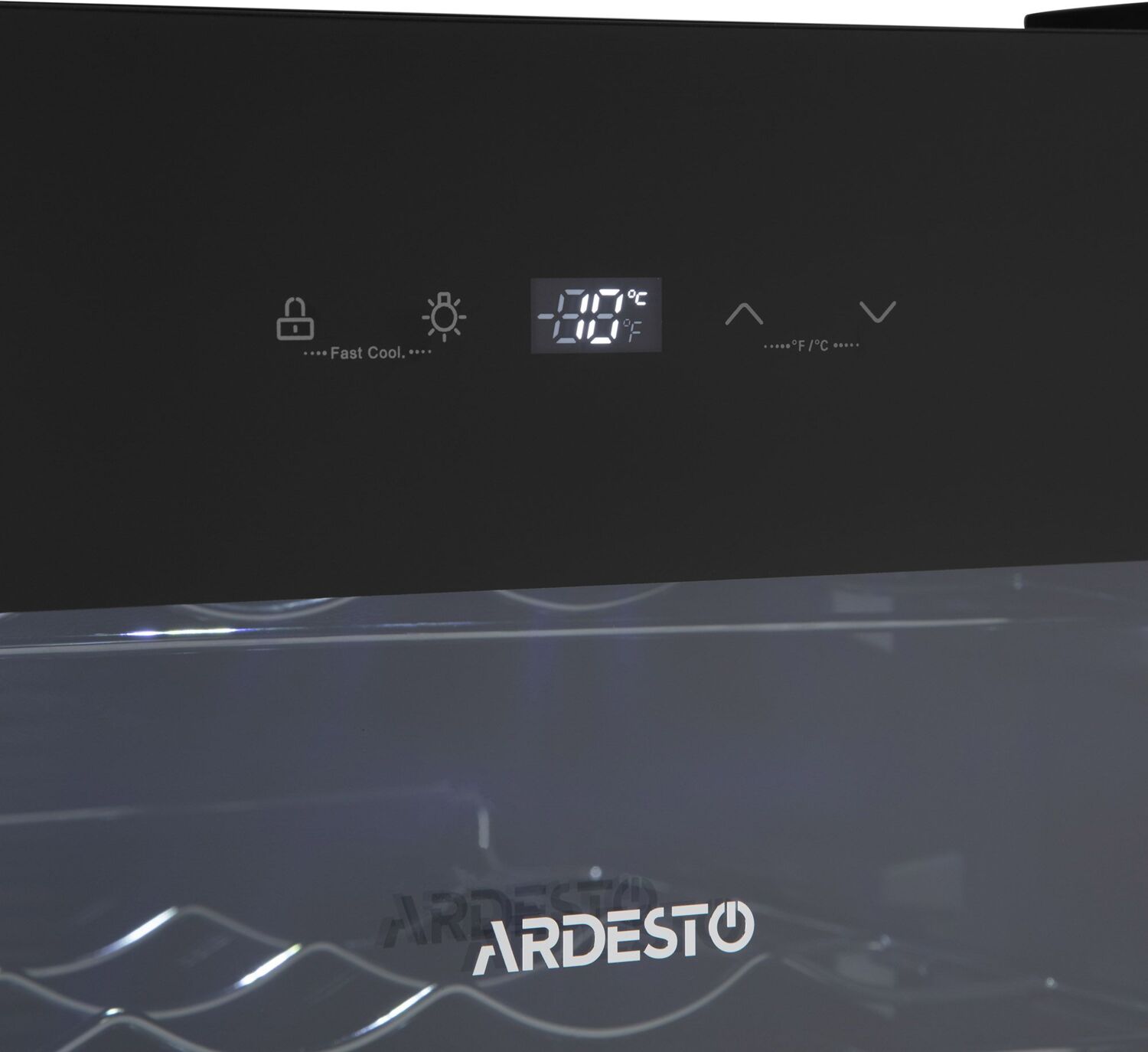 Винна шафа Ardesto WCF-M34 розрахована на роботу в діапазоні від 5°С до 18°С. Для керування використовується сенсорна панель із дисплеєм.