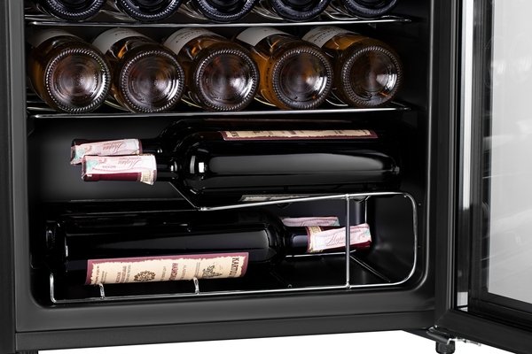 Очень красивый и стильный шкаф, тут нет вопросов. Указано, что охлаждает от +5 до +18. В реальности же ниже +11 опуститься не может в принципе, это при температуре окружающей среды +26. Для вина этого достаточно. Но для других напитков - очевидно, что нет.