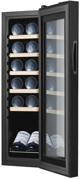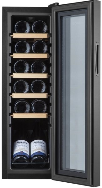 Винотека містить тоноване дверне скло, стійке до подряпин. Двері винотеки герметично закриті, пульт управління обладнаний замком від дітей.