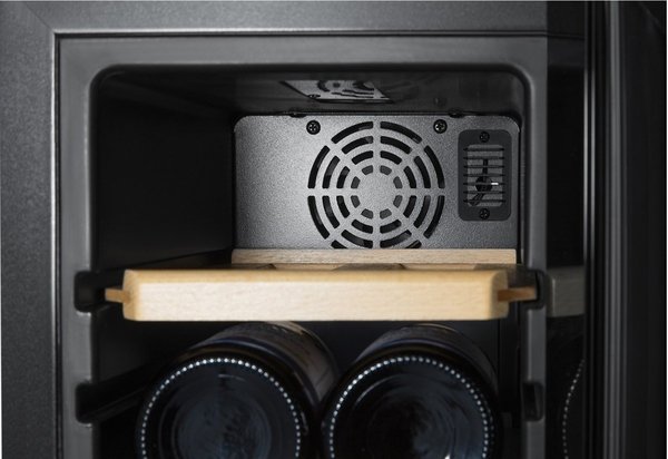 Вино зберігається в безпеці завдяки холодильному компресору. Датчики автоматично оцінюють поточні умови всередині винотеки й адаптують їх до ваших поточних налаштувань. Ця модель має оптимальну циркуляцію повітря за допомогою вентилятора.