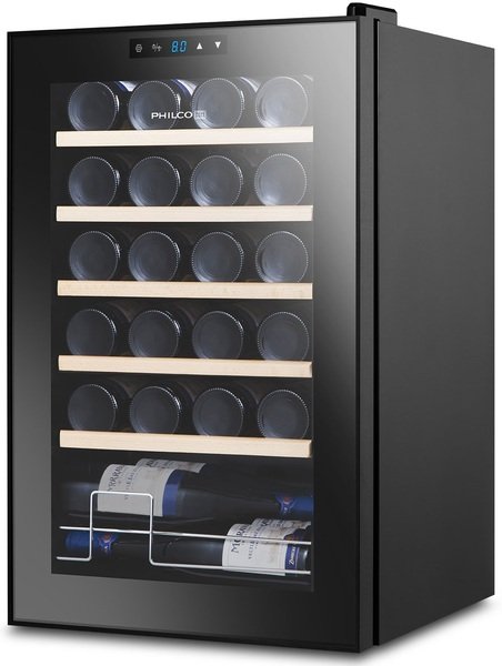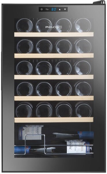 Philco PW 24 KF - це винотека з компресором з однією зоною на 24 пляшки, що збереже ваші вина в найкращій якості за встановленої вами температури. Винотека має внутрішнє світлодіодне підсвічування і просте сенсорне керування. Світлодіодний дисплей використовується для відображення всіх налаштувань.
