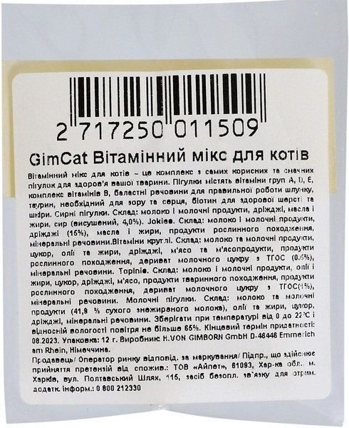 Вітаміни GimCat для котів ГімКет Вітамінний мікс таблетки 12 шт таблеток