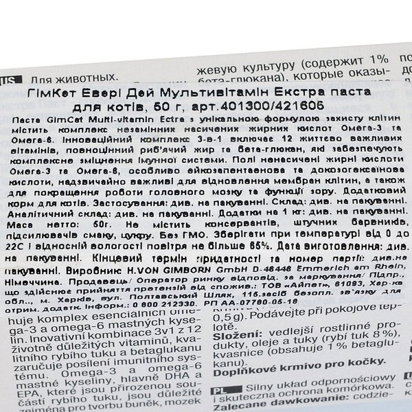 - Вітаміни GimCat Multi-Vitamin Paste Extra для котів паста 50г