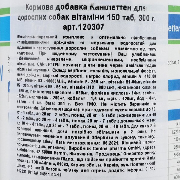 - Вітаміни комплекс для дорослих собак Canina Caniletten 300 г 150 таблеток