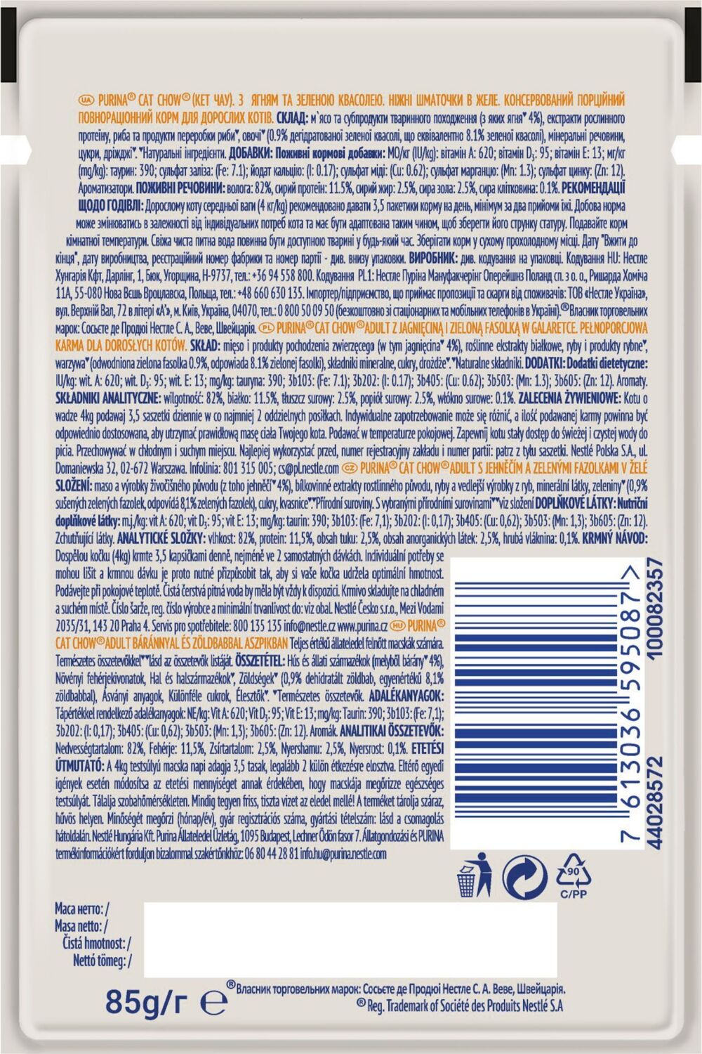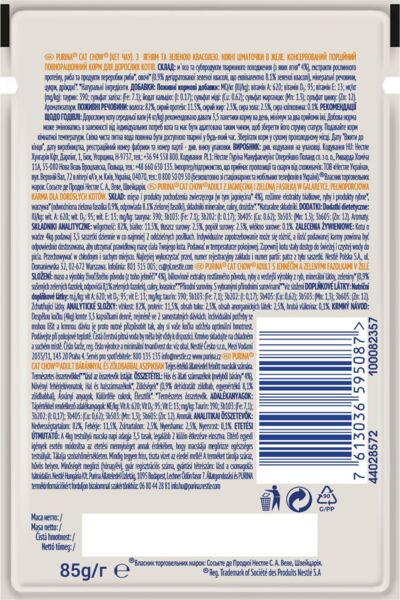 - Вологий корм для котів Cat Chow Adult з ягнятком та зеленою квасолею 85г