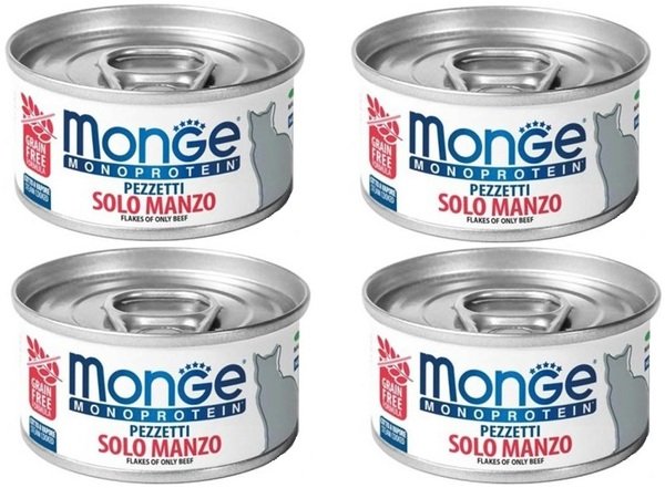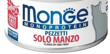 - Вологий корм для кішок Monge Cat Monoprotein м'ясні пластівці з яловичини, 80 г