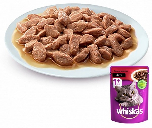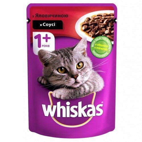 - Вологий корм для котів Whiskas пауч яловичина в соусі 100г