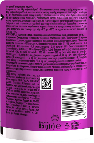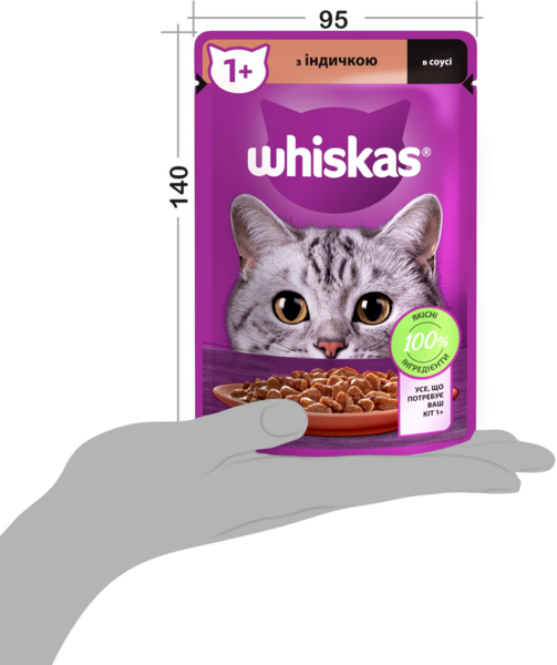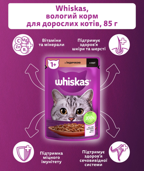 - Вологий корм для котів Whiskas індичка в соусі 85г
