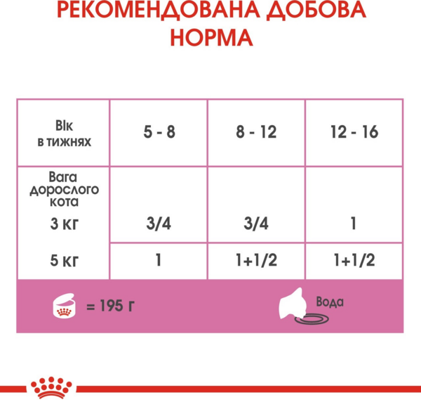 Годування кошеняти раціоном з високою привабливістю, що має належні смакові якості, аромат та текстуру, забезпечить довготривалу інстинктивну прихильність до якісного харчування.