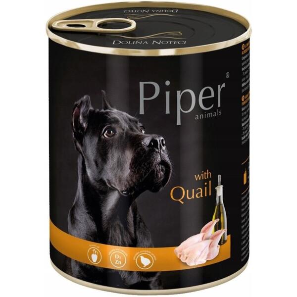 Вологий корм Dolina Noteci Piper з перепелкою — повнораціонне харчування для дорослих собак усіх порід, виготовлене з високоякісного м’яса перепелки. Цей корм містить легко засвоюваний білок, що сприяє підтримці м’язової маси та загальному здоров’ю тварини. Формула не містить зернових, сої, штучних барвників та консервантів, тому підходить для собак із чутливим травленням або харчовими алергіями. Завдяки вмісту льняної олії корм забезпечує оптимальний баланс Омега-3 і Омега-6 жирних кислот для здоров’я шкіри та блиску шерсті.