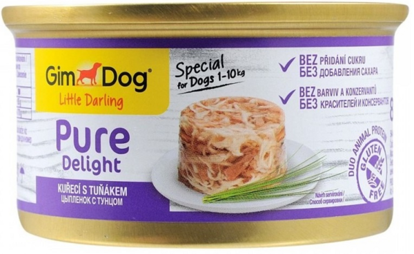 - Вологий корм для собак GimDog LD Pure Delight мініатюрних порід з куркою та тунцем 85 г