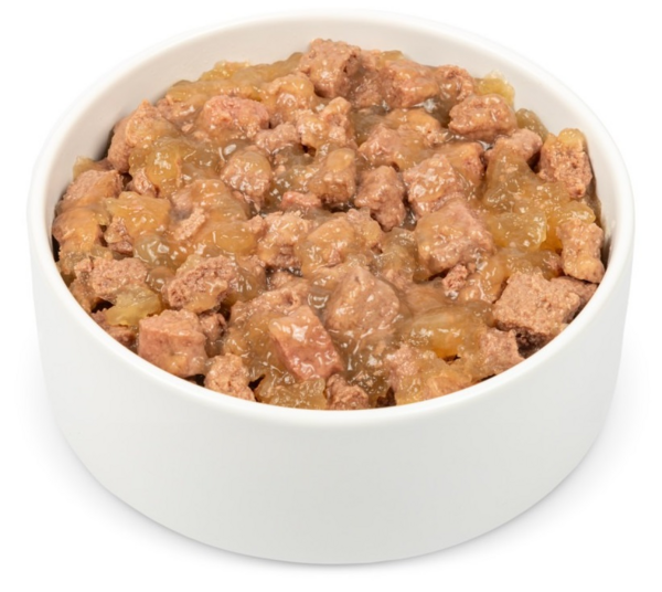 | Склад | М'ясо та продукти тваринного походження не менше 86% у шматочках (у тому числі з курки – 55%, з яловичини – 26%, з індички – 5%), злаки, сіль харчова – 0,3%. Шматочки становлять щонайменше 50% |