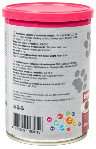- Вологий корм для собак Pet Chef з Яловичиною 415 г