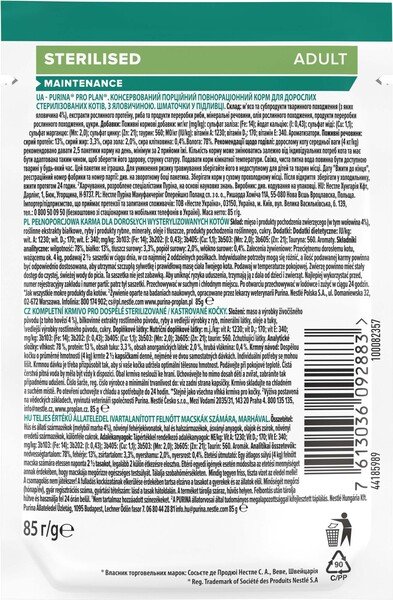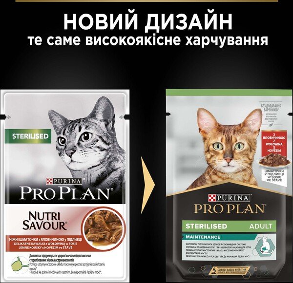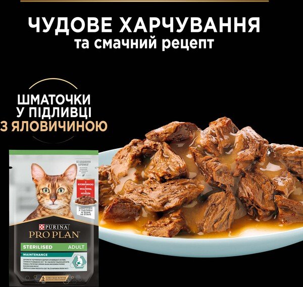 - Вологий корм для стерилізованих котів Purina Pro Plan Cat Nutrisavour Sterilised з яловичиною 85 г