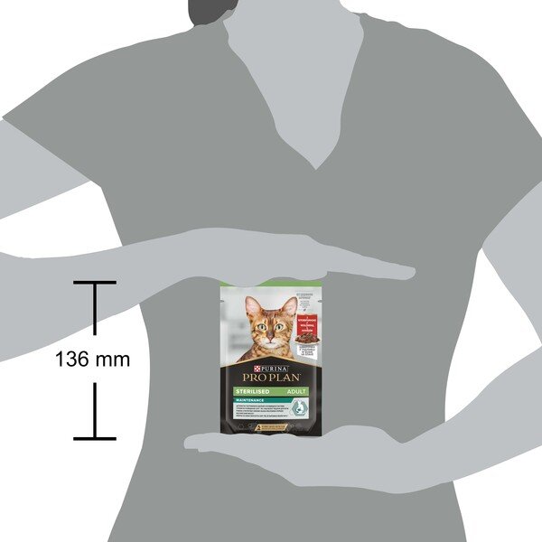 Вологий корм Purina PRO PLAN Sterilised NutriSavour шматочки з яловичиною для кастрованих котів. Це повноцінний і збалансований раціон для дорослих котів, поєднує в собі набір і легкозасвоюваних поживних інгредієнтів, а також має відмінний смак, що подобається більшості котів.