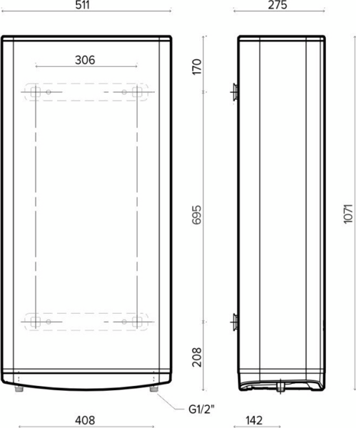 | Габарити (ВхШхГ), мм | 1071х511х275 |