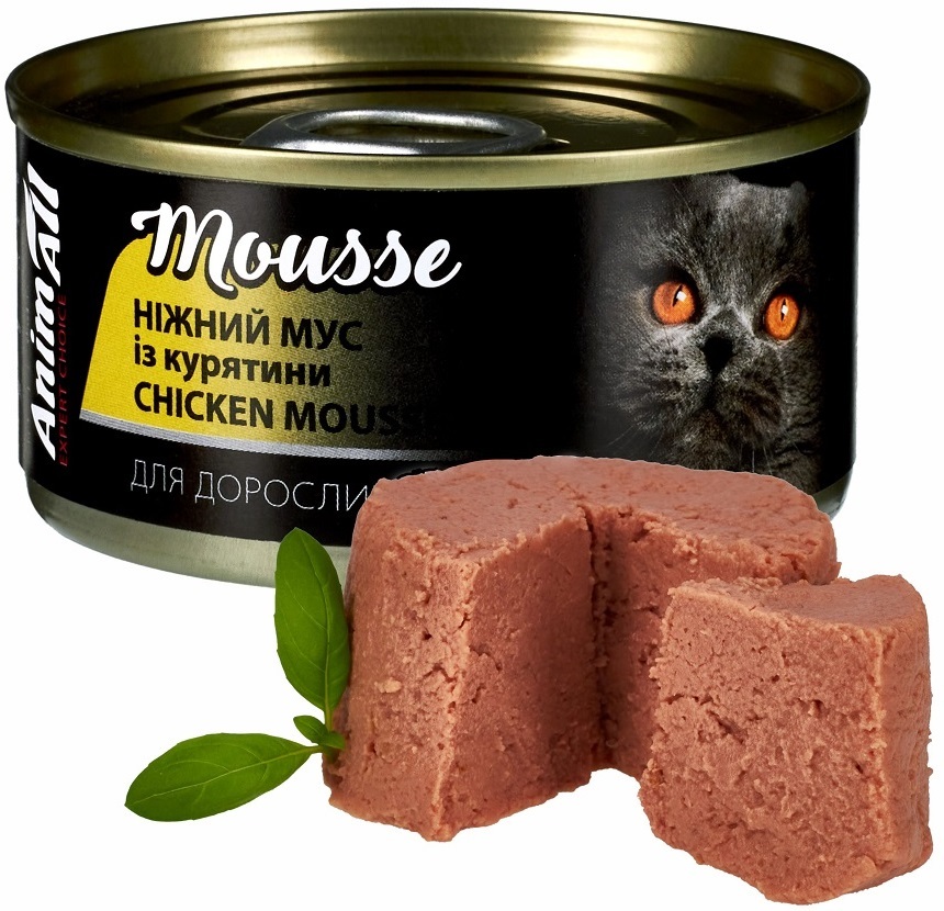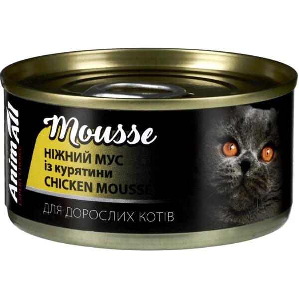 - Вологий корм для котів AnimAll ніжний мус із курятини 80 г