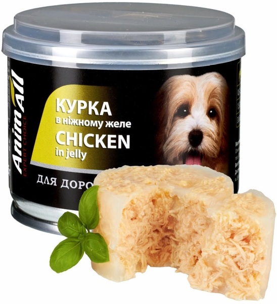 - Вологий корм для собак AnimAll курка в ніжному желе 195 г