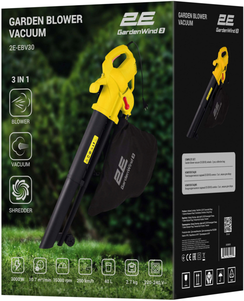 Повітродув-пилосос садовий 2Е GardenWind 3000Вт 3в1 (2E-EBV30)