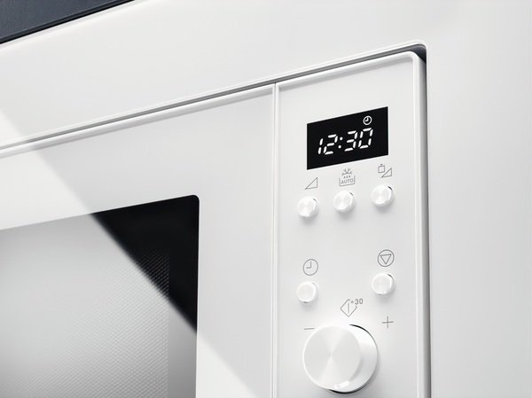 За неимением лишнего пространства на кухне этот вариант встраиваемой микроволновки мне подошел как нельзя лучше. В интерьере комнаты она смотрится вполне гармонично. Видимая часть ее белоснежная с крупным дисплеем, показывающим параметры, симпатичными кнопками и регуляторами. В управлении она простая. Чаще всего пользуюсь разморозкой, а там ввожу тип продукта, вес, дальше она сама разогреет, требуется только задать время. Таймер автоматически отключает Электролюкс 2173, предотвращая передержки блюд. Если прогрев недостаточный, добавляю еще минуты. Будучи в гостях у сотрудницы видела, как та управлялась с этим аппаратом. Мне внешне печь понравилась и хозяйка ее советовала, поэтому купила в этом магазине.