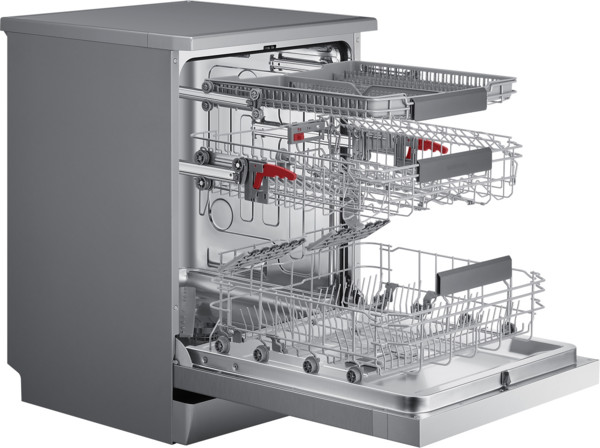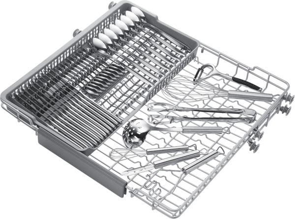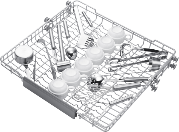 Використовуйте простір посудомийної машини з більшою користю. Третій розкладний металевий кошик у верхній частині забезпечує спеціальну зону для столових приладів і кухонного посуду, звільняючи більше місця в нижніх кошиках. Це також означає, що предмети посуду можна легко завантажувати й вивантажувати, особливо тому, що він знімний і його можна переміщати куди завгодно.