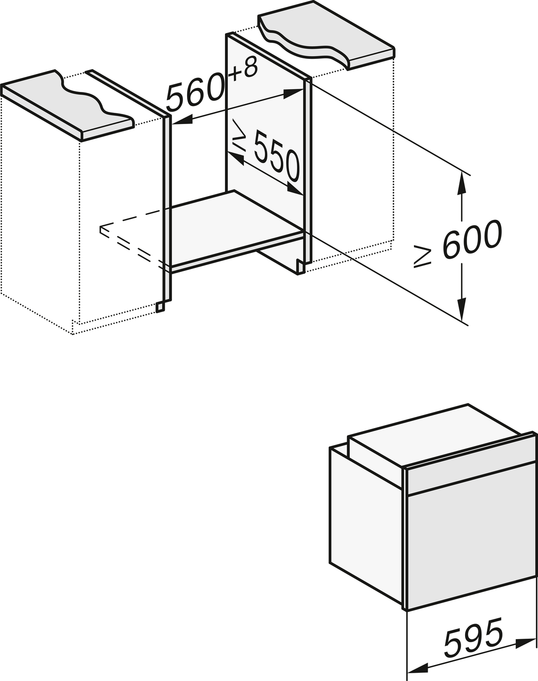 | Глибина для вбудовування, мм | 550 |