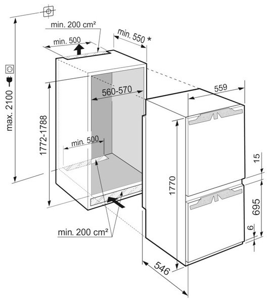 | Додатково | Великі вбудовані холодильники, Вузькі вбудовані холодильники |