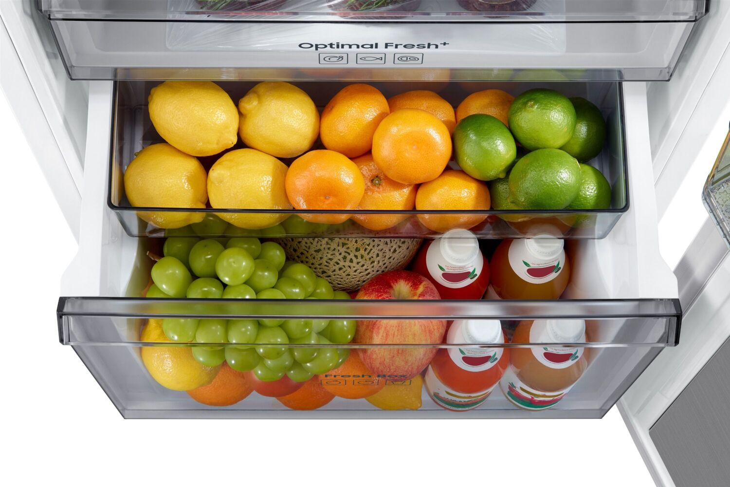 Зберігайте оригінальну текстуру, аромат та смак швидкопсувних продуктів довше. Ви можете регулювати вологість у ящику Humidity Fresh+, просто пересуваючи важіль управління. Це створює ідеальне середовище для зберігання різних фруктів та овочів, завдяки чому вони залишаються хрусткими, свіжими й соковитими.