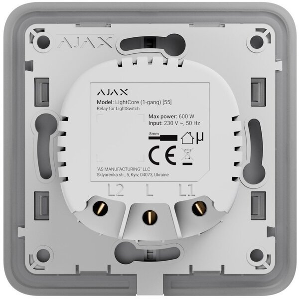 LightSwitch — це розумна система керування освітленням, що забезпечує кращий електрозахист і надійність на рівні професійних систем безпеки. Не потрібна нейтраль, щоб підключити одноклавішний вимикач. Він керується за допомогою програмного забезпечення Ajax і не має проблем зі збоями чи зависаннями. Розумний одноклавішний вимикач також має тампер проти злому.