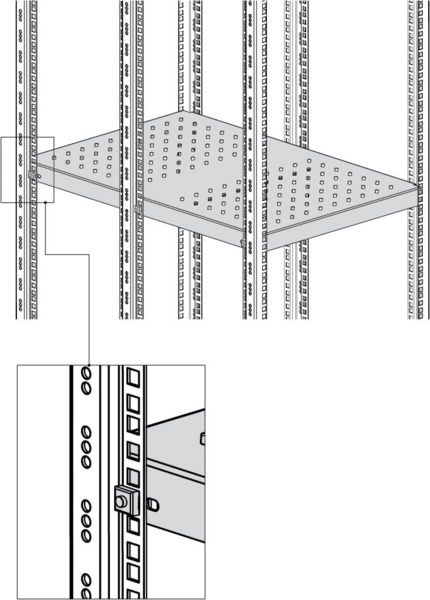 Полиця, що кріпиться на шість 19-дюймових монтажних профілів