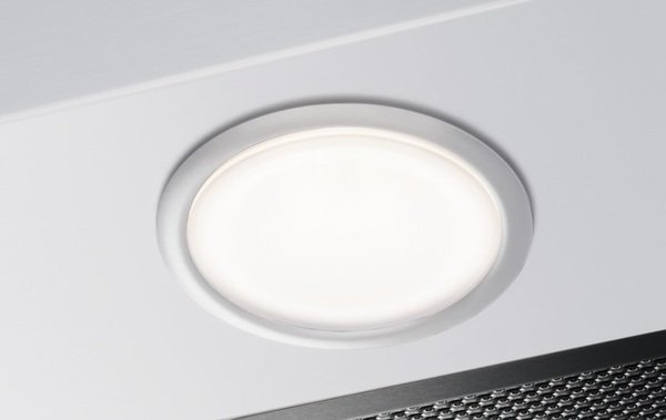 У витяжки 3 швидкості, рівень продуктивності виставляється за допомогою механічного перемикача. Поруч розташований перемикач світлодіодного підсвічування. У моделі дві потужні та економічні лампи, що забезпечують акцентоване освітлення плити.